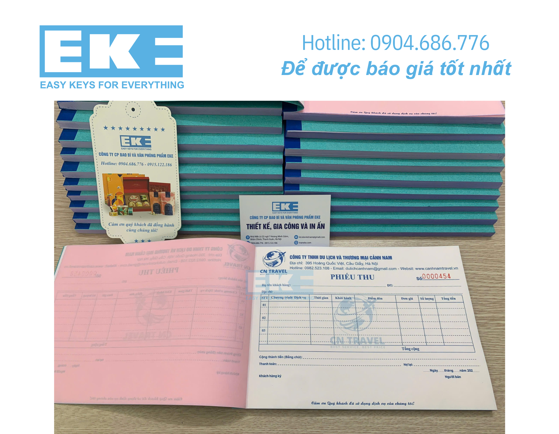 In EKE tự hào là đơn vị chuyên cung cấp dịch vụ in hóa đơn chất lượng cao cho doanh nghiệp, cửa hàng, siêu thị, nhà hàng, quán café và các lĩnh vực kinh doanh khác trên toàn quốc. Chúng tôi cam kết mang đến những sản phẩm sắc nét – chính xác – chuyên nghiệp để hỗ trợ tối ưu cho hoạt động kinh doanh của bạn.