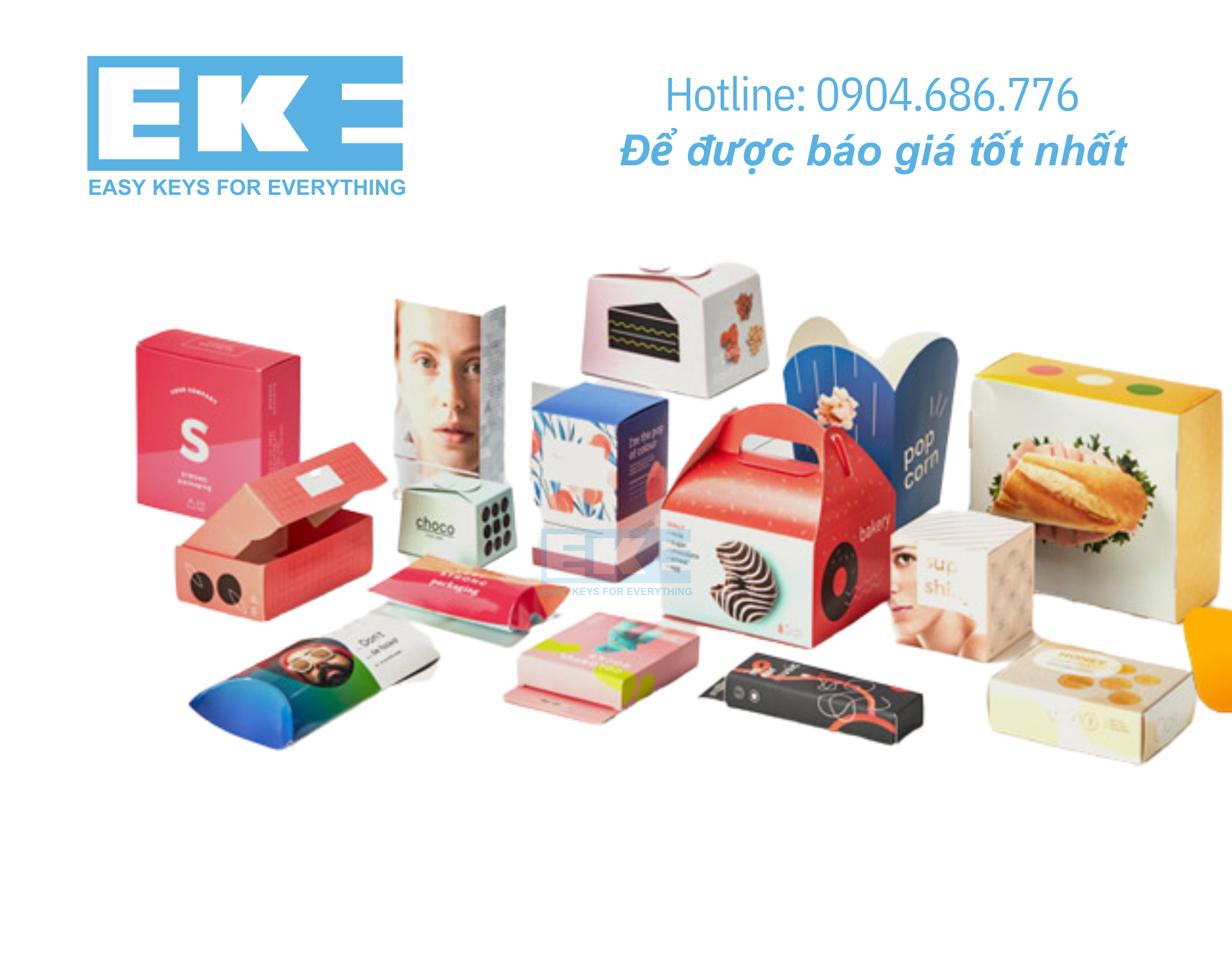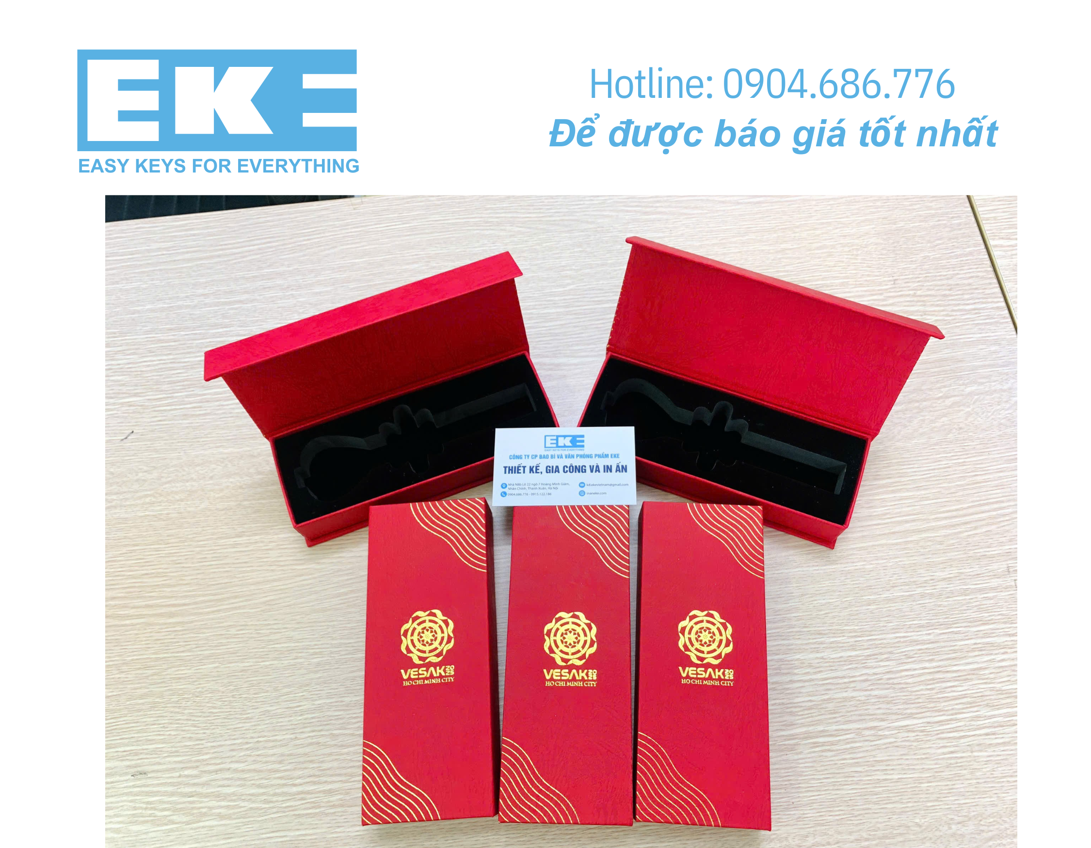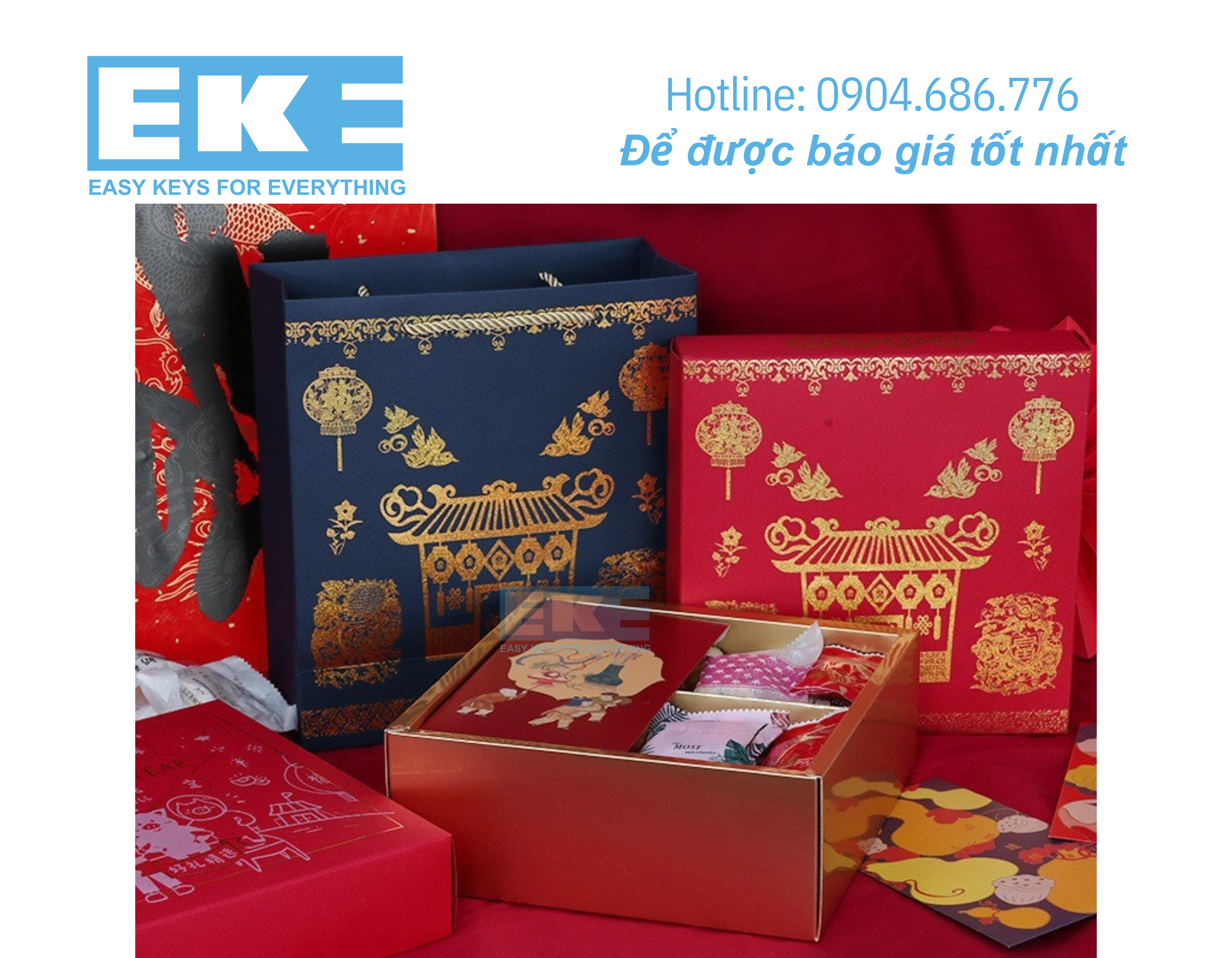 Eke cung cấp dịch vụ thiết kế hộp quà tặng theo yêu cầu, cá nhân hóa từng chi tiết như màu sắc, logo, thông điệp thương hiệu hoặc tên người nhận. Kỹ thuật in offset, ép kim, phủ UV, dập nổi… được áp dụng linh hoạt, đảm bảo mỗi hộp quà đều thể hiện được đẳng cấp và tinh thần của món quà bên trong.